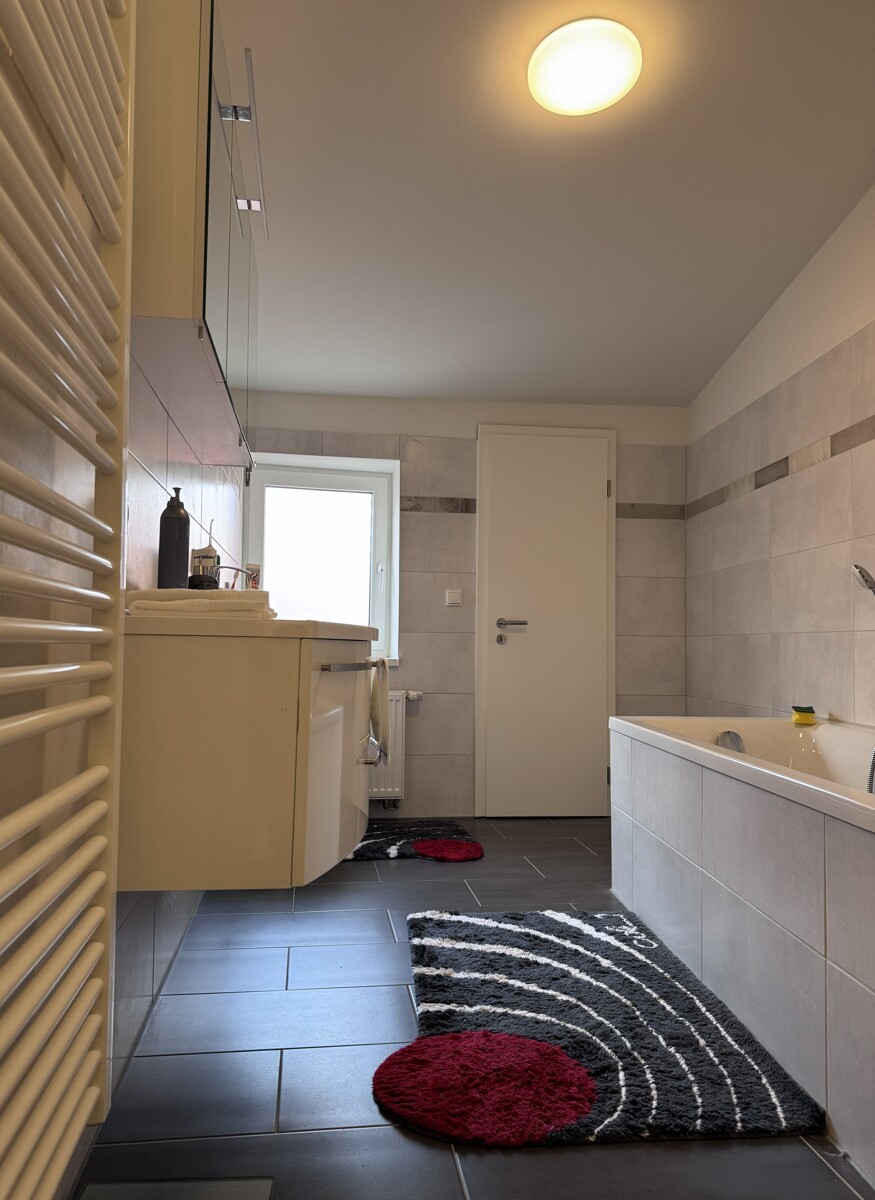 – Tageslichtbad mit Badewanne, Waschtisch und Spiegelschrank