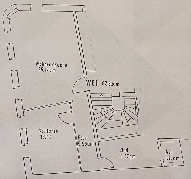 Wohnen/Kochen Wohnen/Kochen Schlafen Bad Flur Treppenhaus Dachgeschoss