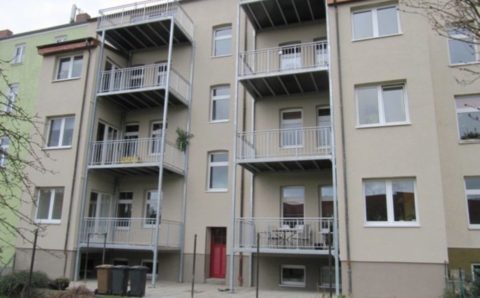 Die angebotene Wohnung befindet sich im 1. Obergeschoss eines sanierten Mehrfamilienhaus. Zum Objekt gehört ein ruhig gelegener begrünter Innenhof mit teilweise Baumbestand, der von den Mietern genutzt werden kann.