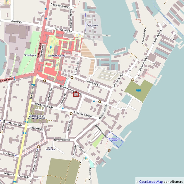 Walther-Rathenau-Straße, 19055 Schwerin. Es handelt sich um eine natur- und stadtnahe Wohnlage in unmittelbarer Nähe zum Heidensee (ca. 250 m). Es besteht eine gute Anbindung in die Innenstadt durch eine regelmäßig verkehrende Buslinie.