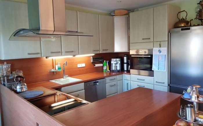 Doppelgarage, Außenpool, Außensauna, Gaszentralheizung Elco Klöckner, Einbauküche, teilweise überdachte Terrasse, Gartenteich, alter Baumbestand, Wintergarten